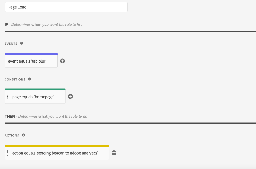 And here’s how a rule looks like when it is completely defined in Adobe Launch: